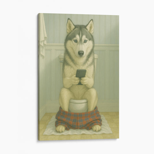 German Shorthaired Pointer Dog On The Phone On The Toilet