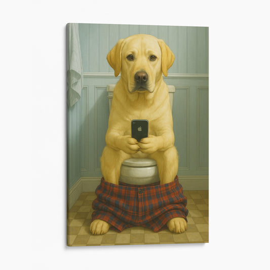 Chocolate Labrador Retriever Dog Reading The Newspaper On The Toilet
