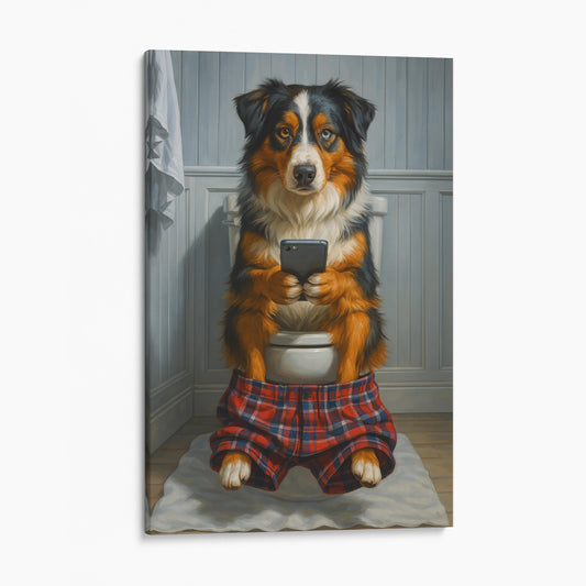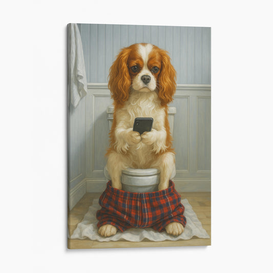 Pembroke Welsh Corgi Dog On The Phone On The Toilet