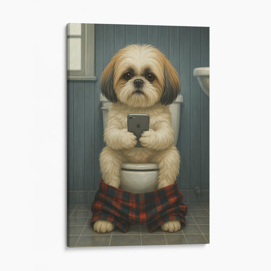 Silver Labrador Retriever Dog On The Phone On The Toilet