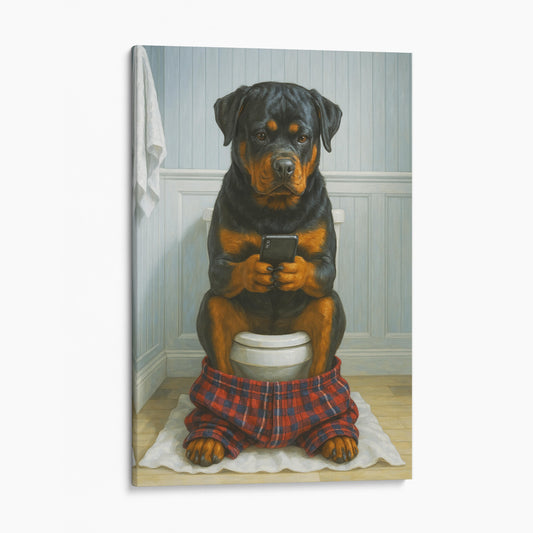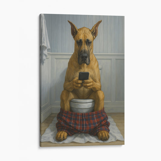 Cane Corso Dog Reading The Newspaper On The Toilet