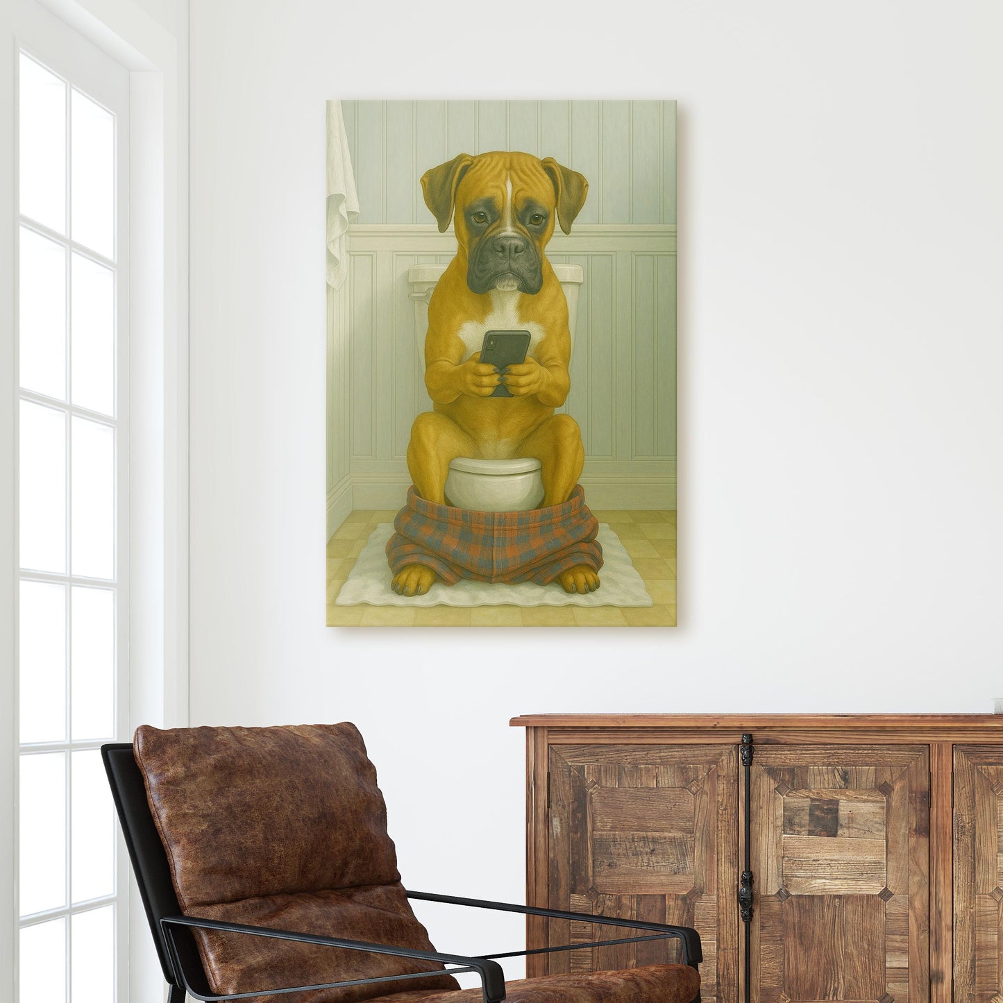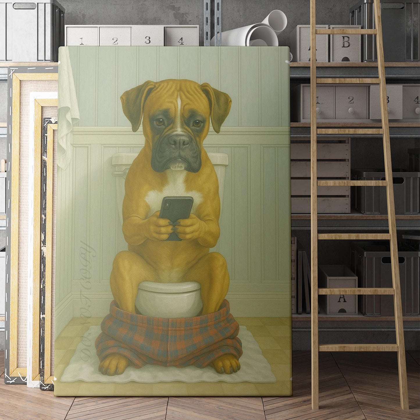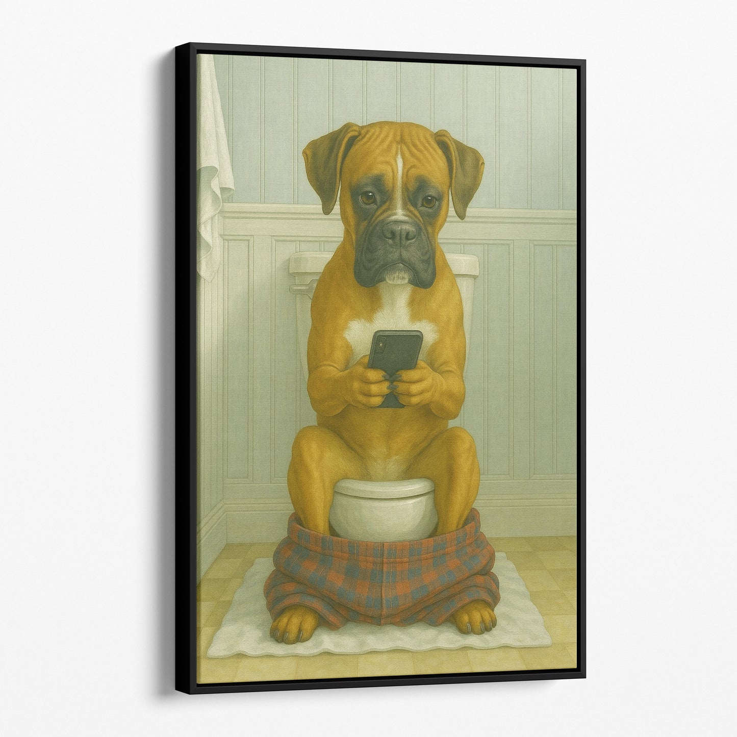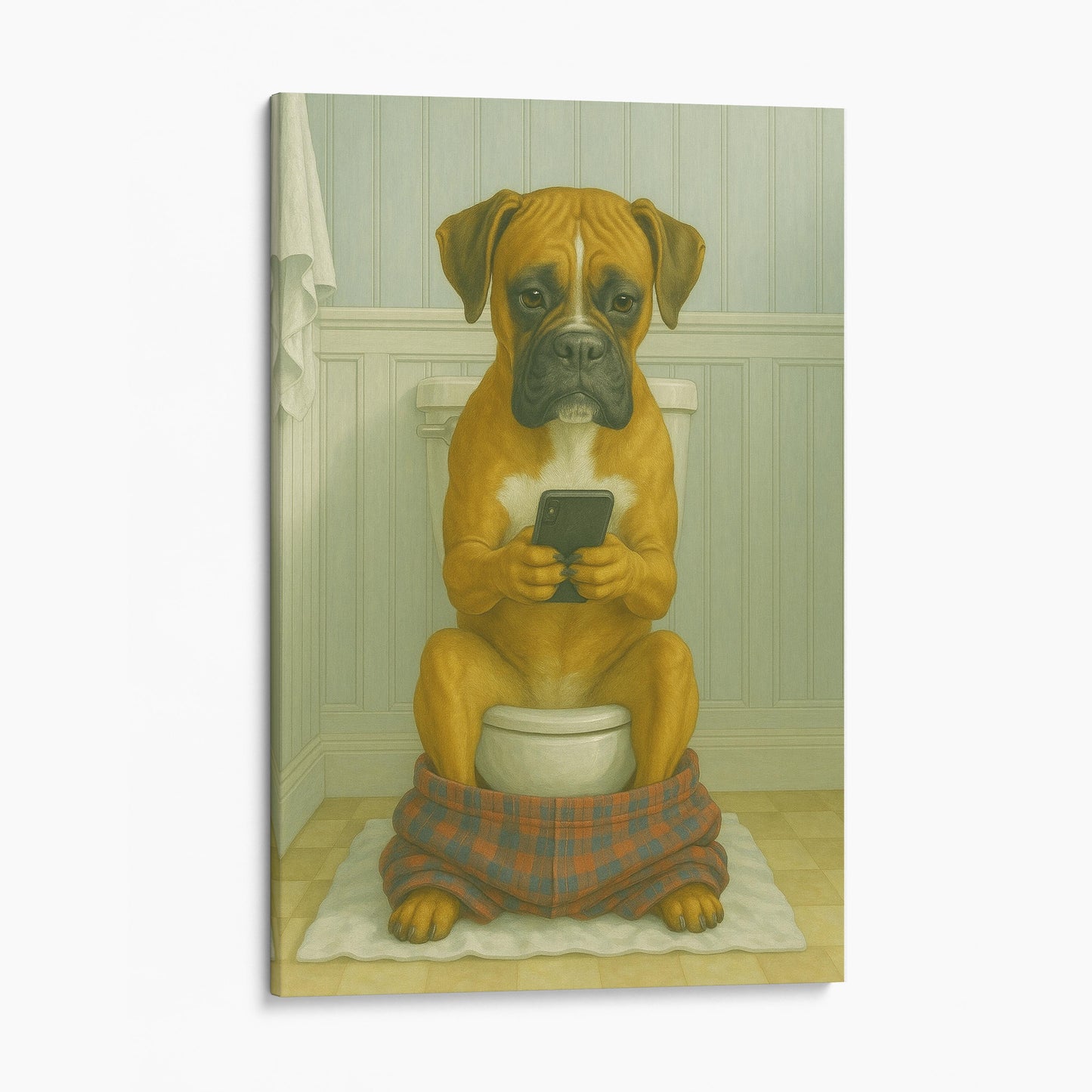 Boxer On The Phone On The Toilet