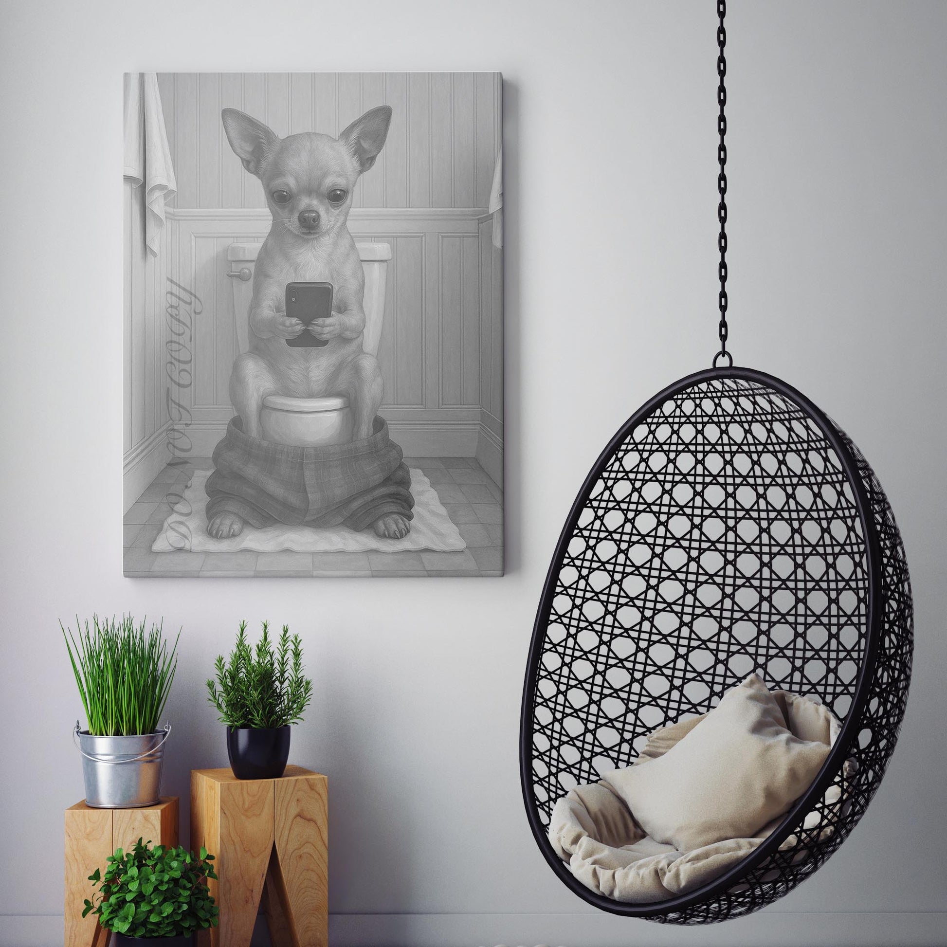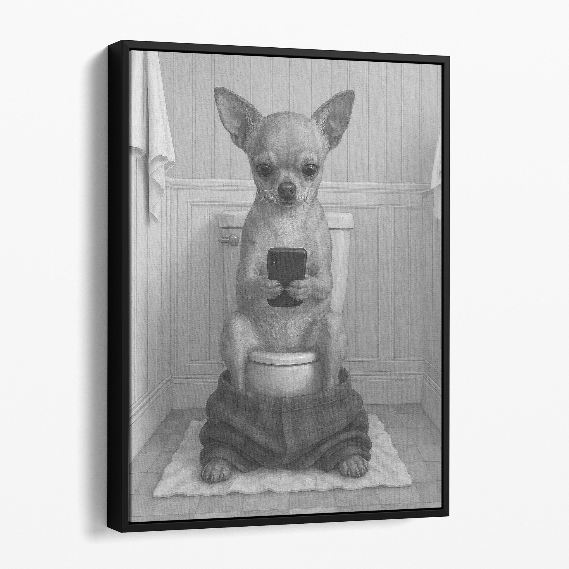 Chihuahua Dog On The Phone On The Toilet