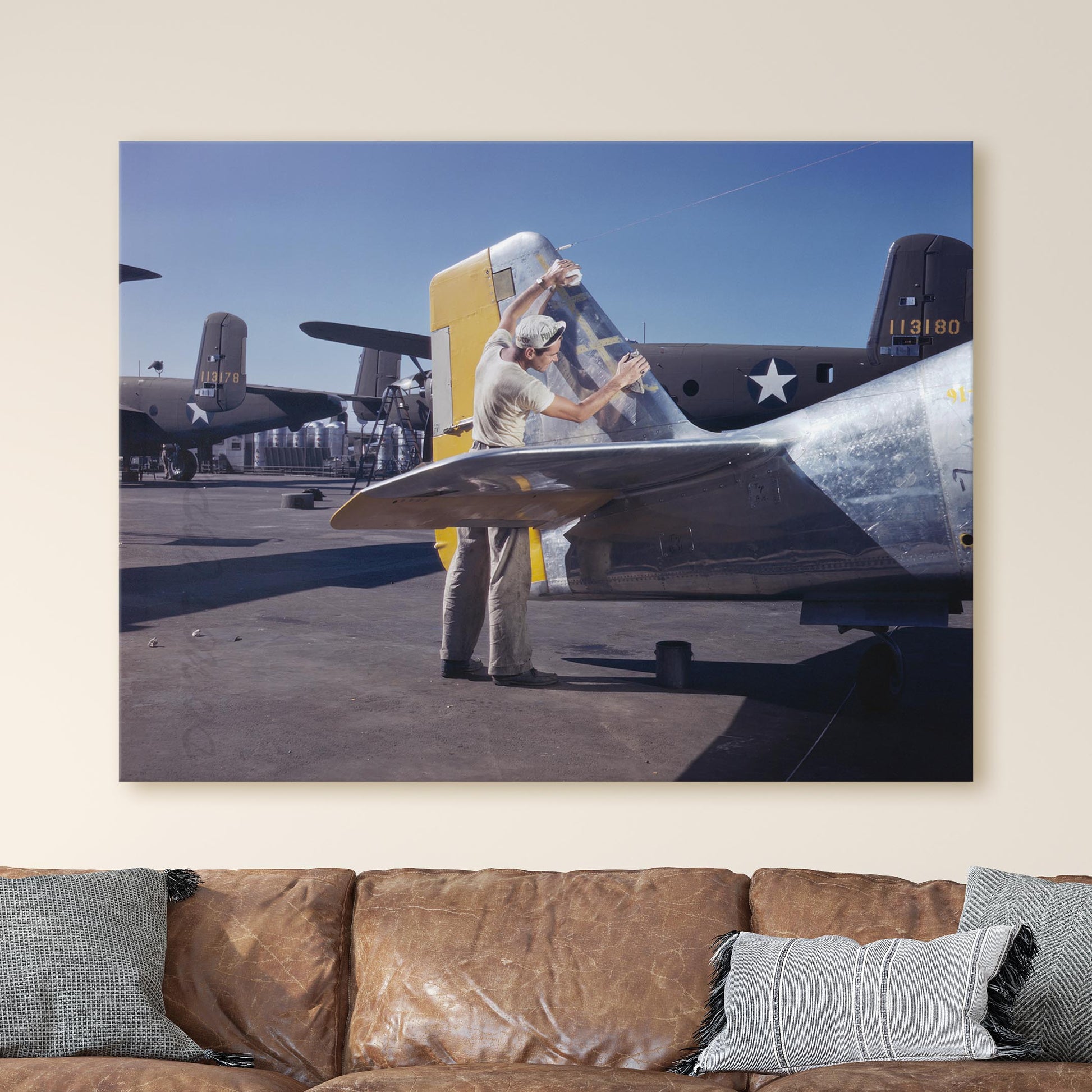 Cleaning the Tail of a P51 Fighter Plane, World War Two