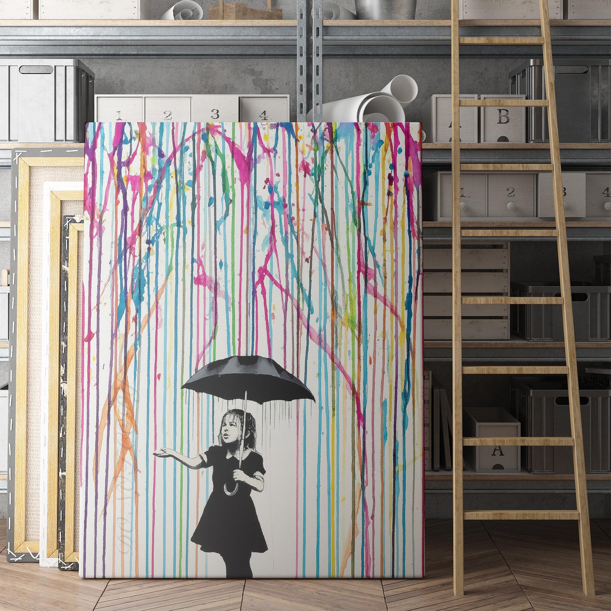 Colored Rain Girl Banksy