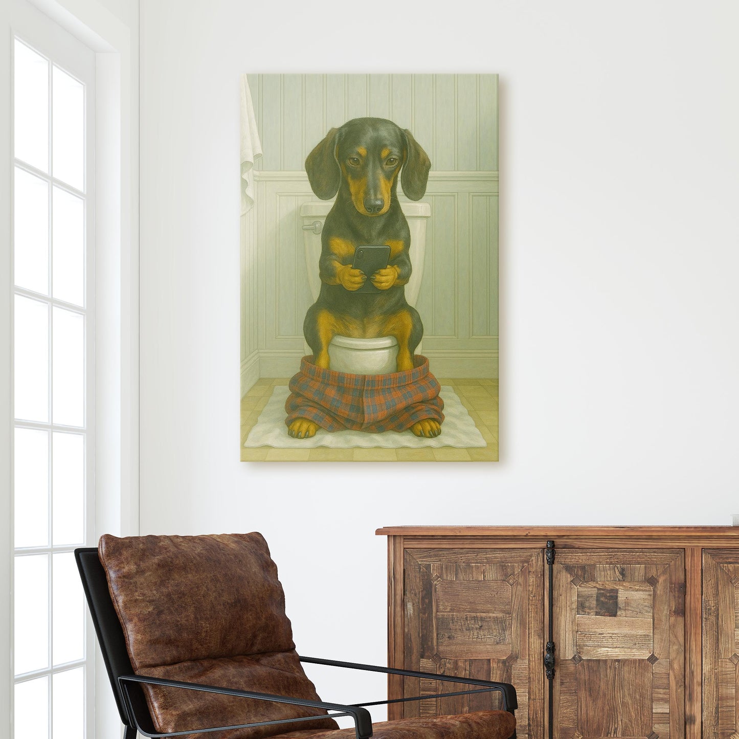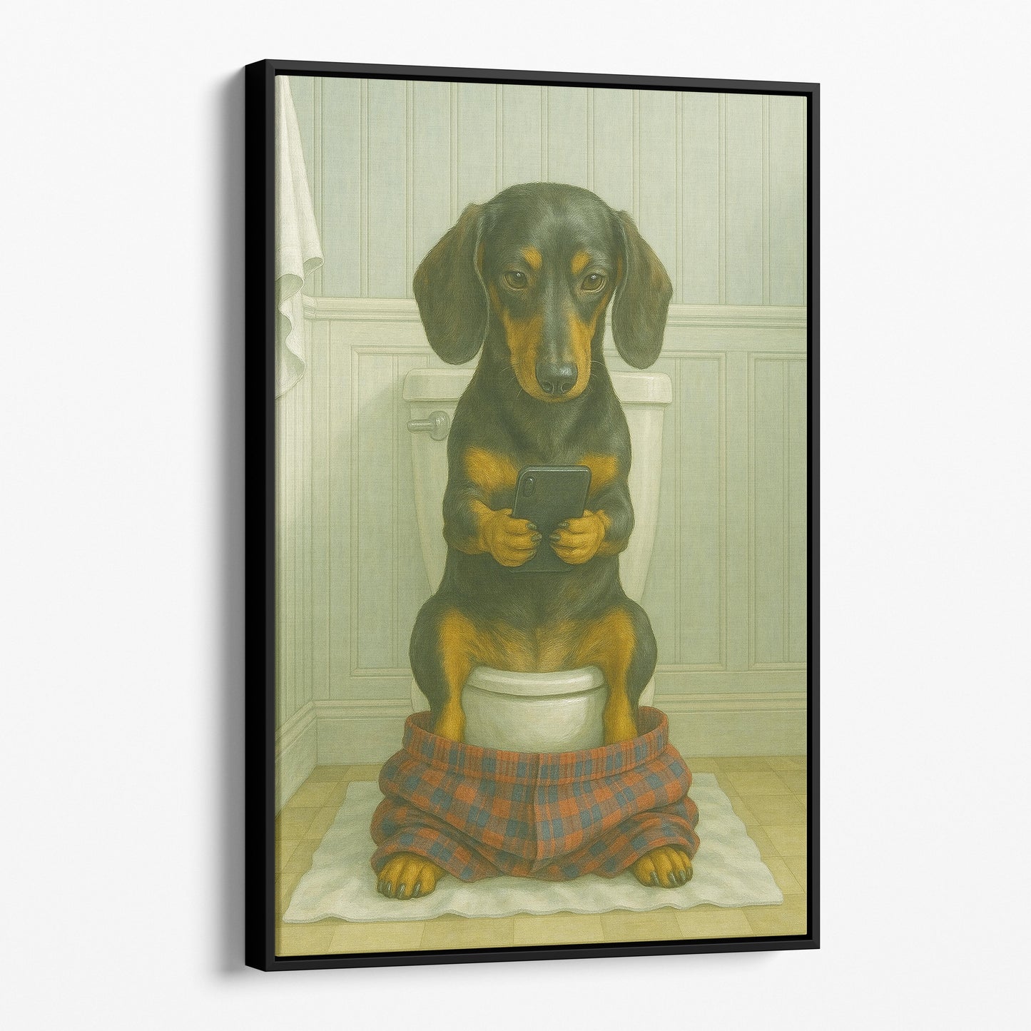 Dachshund On The Phone On The Toilet