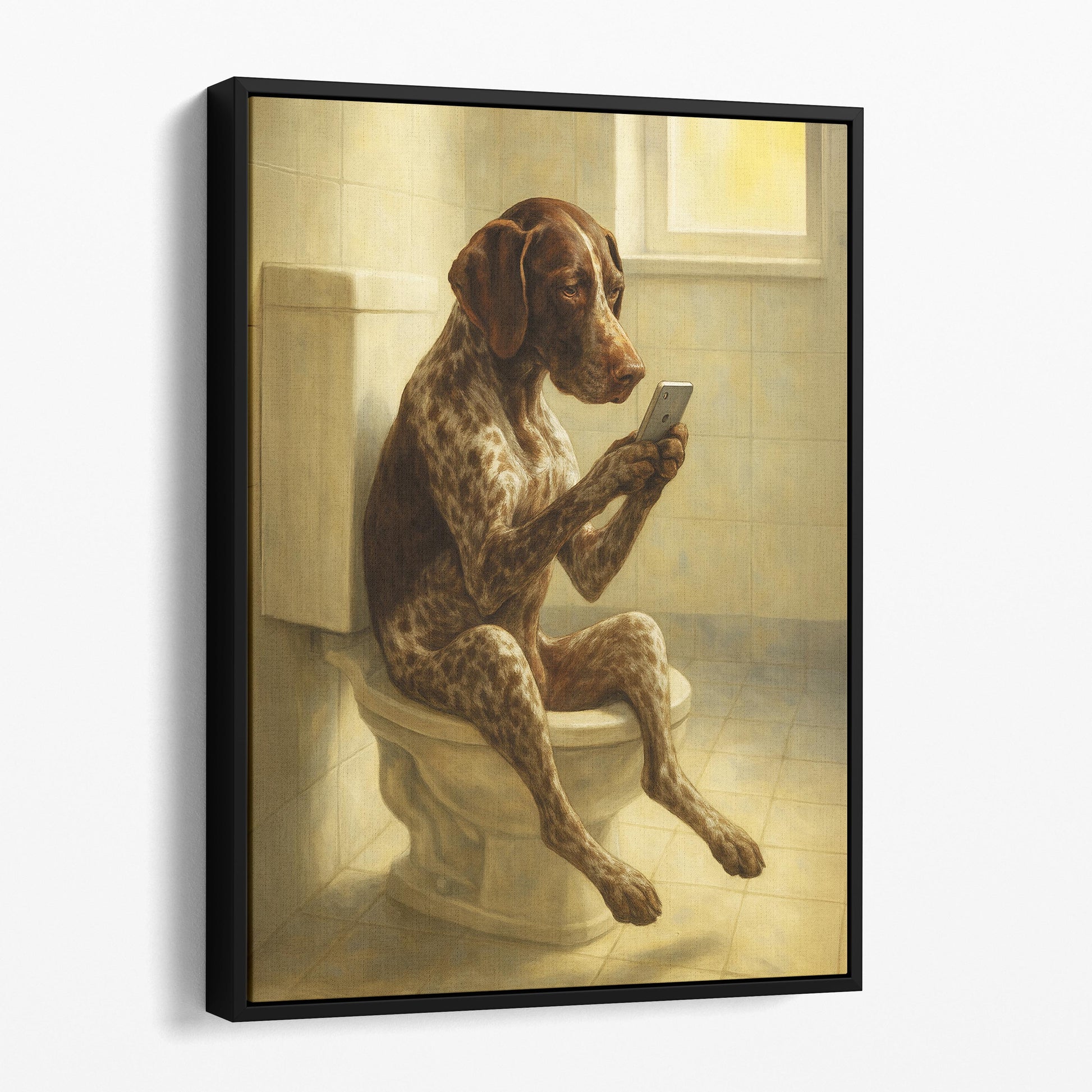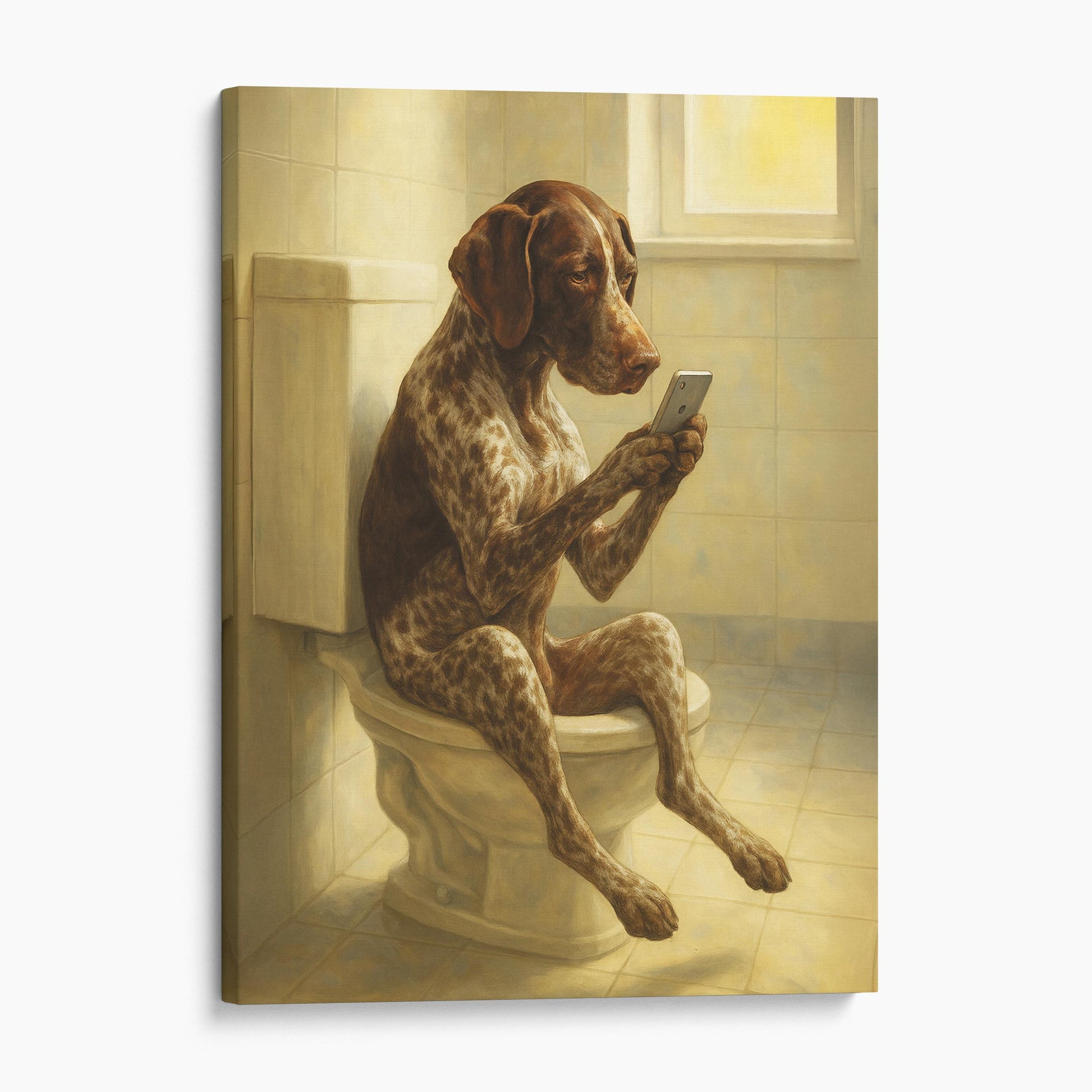 German Shorthaired Pointer Dog On The Phone On The Toilet