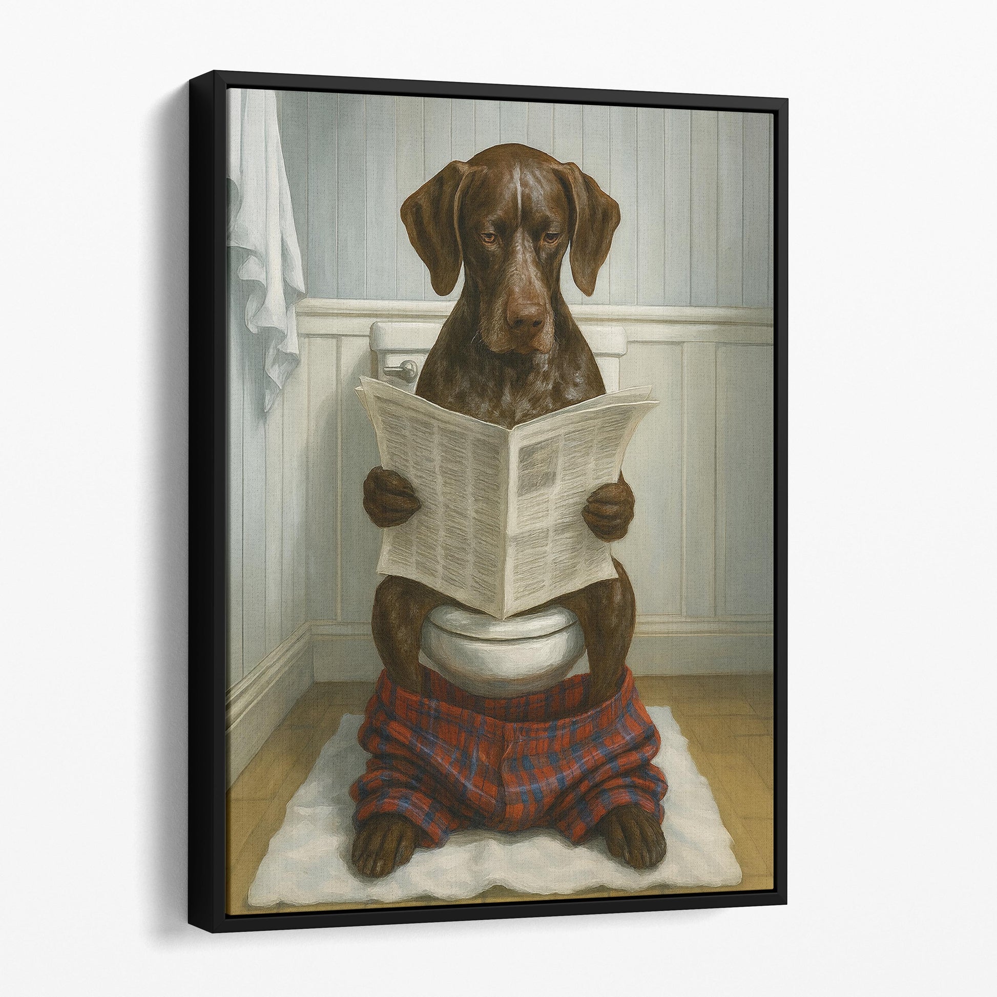 German Shorthaired Pointer Dog Reading The Newspaper On The Toilet