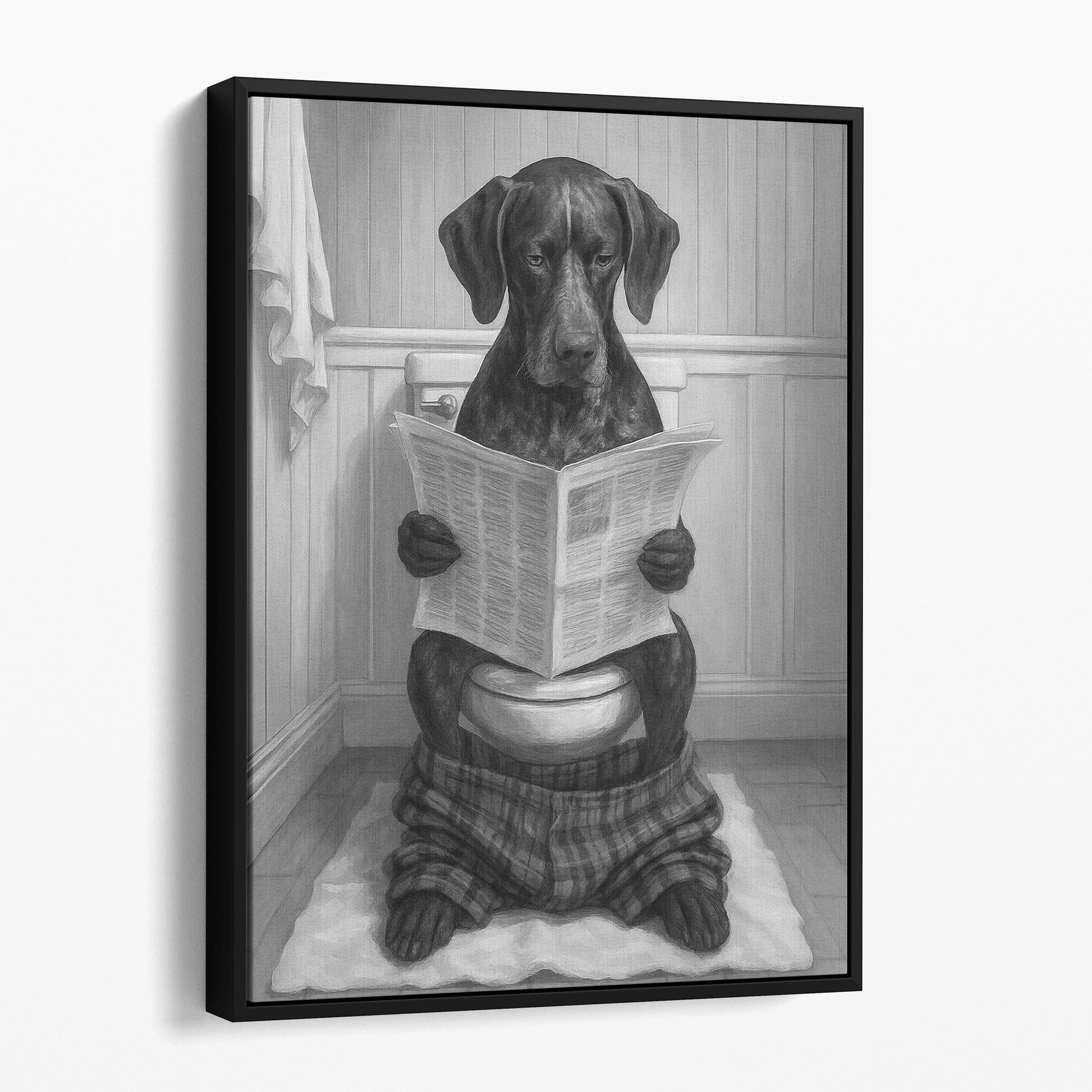 German Shorthaired Pointer Dog Reading The Newspaper On The Toilet