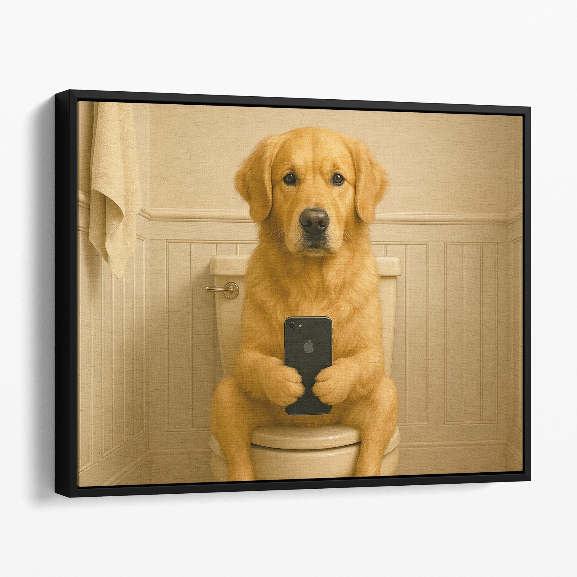 Golden Retriever Dog On The Phone On The Toilet