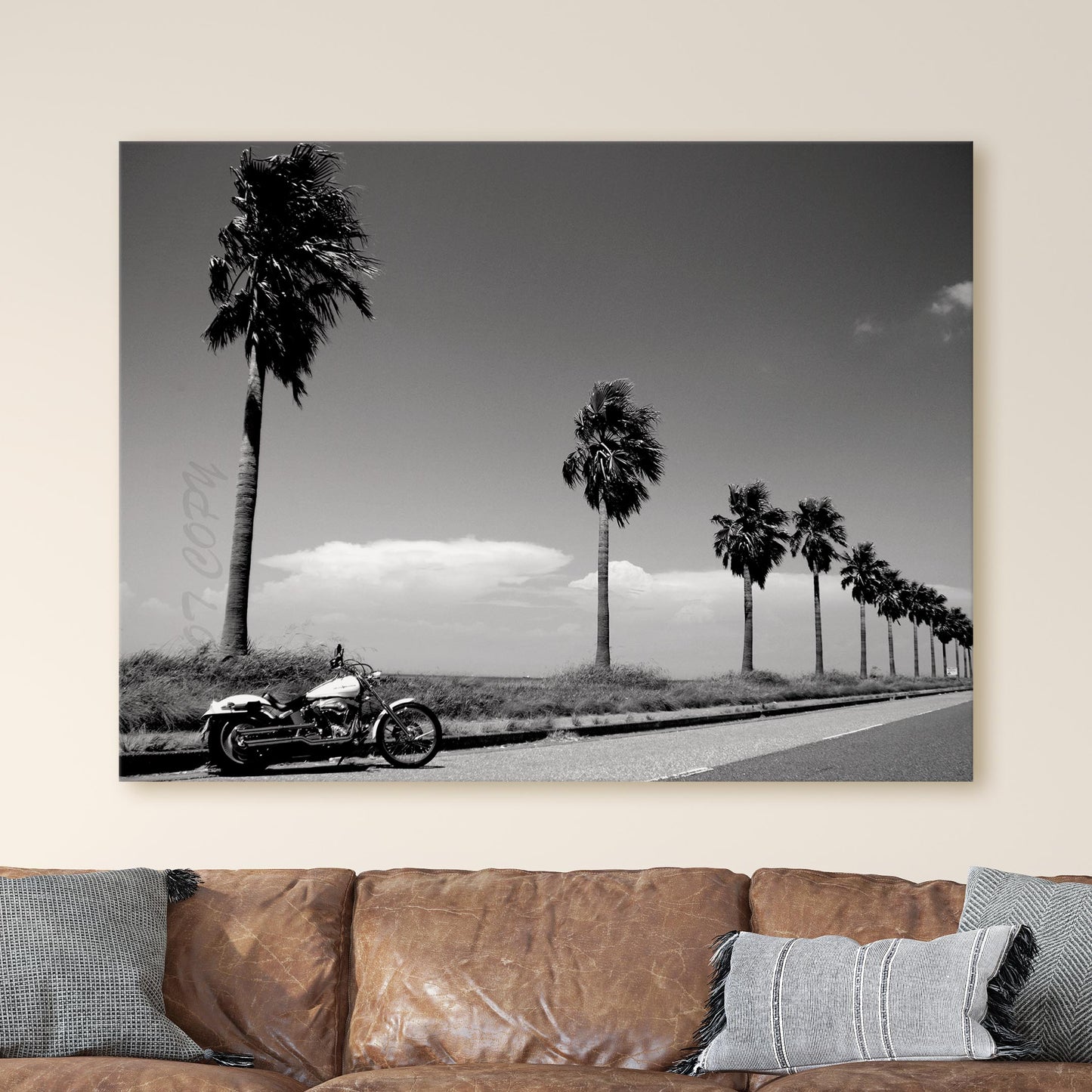 Harley Davidson Motorcycle By Beach & Palm Trees