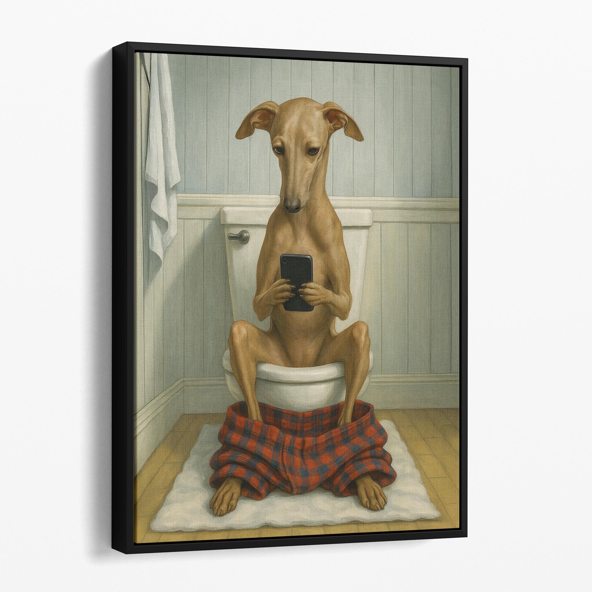 Italian Greyhound Dog On The Phone On The Toilet