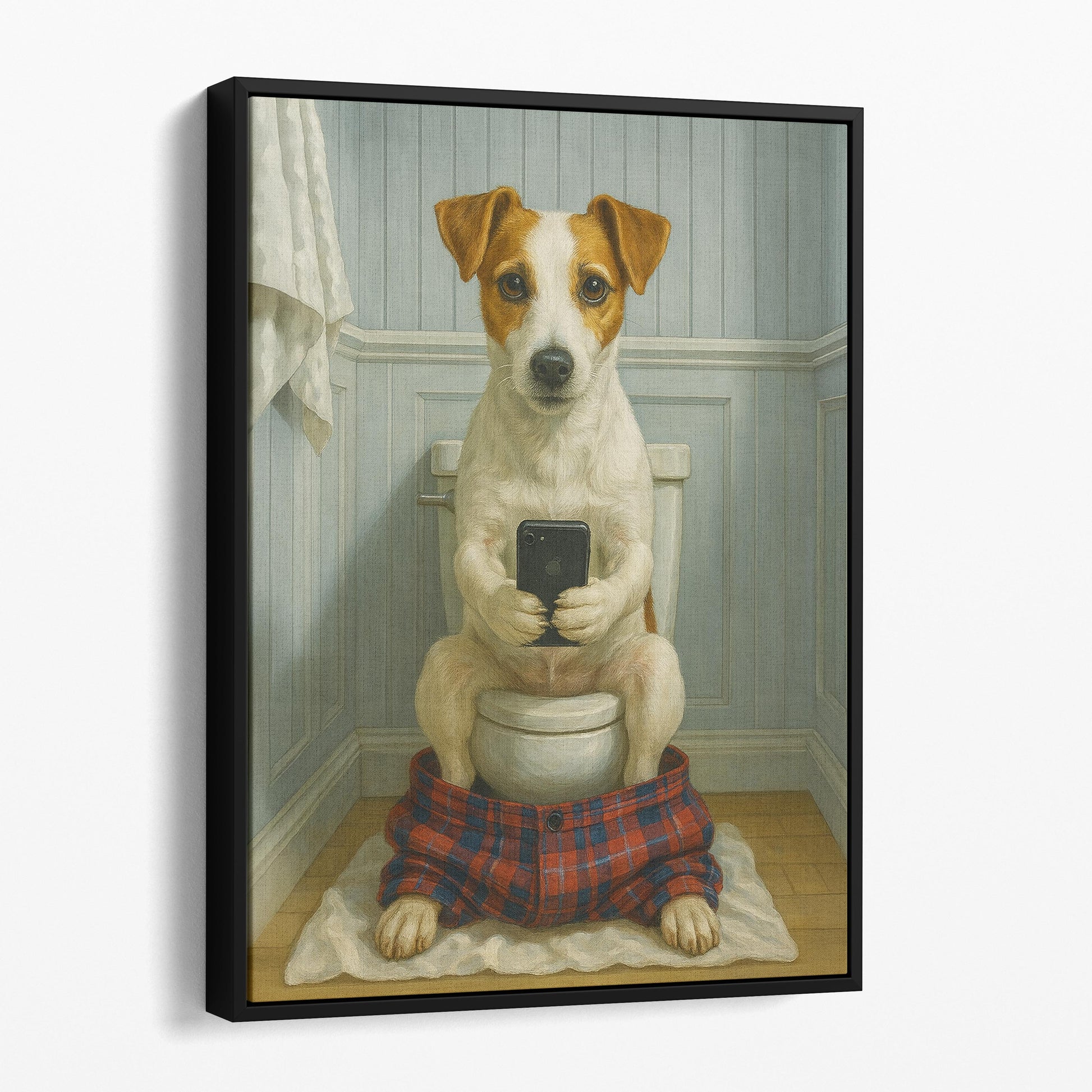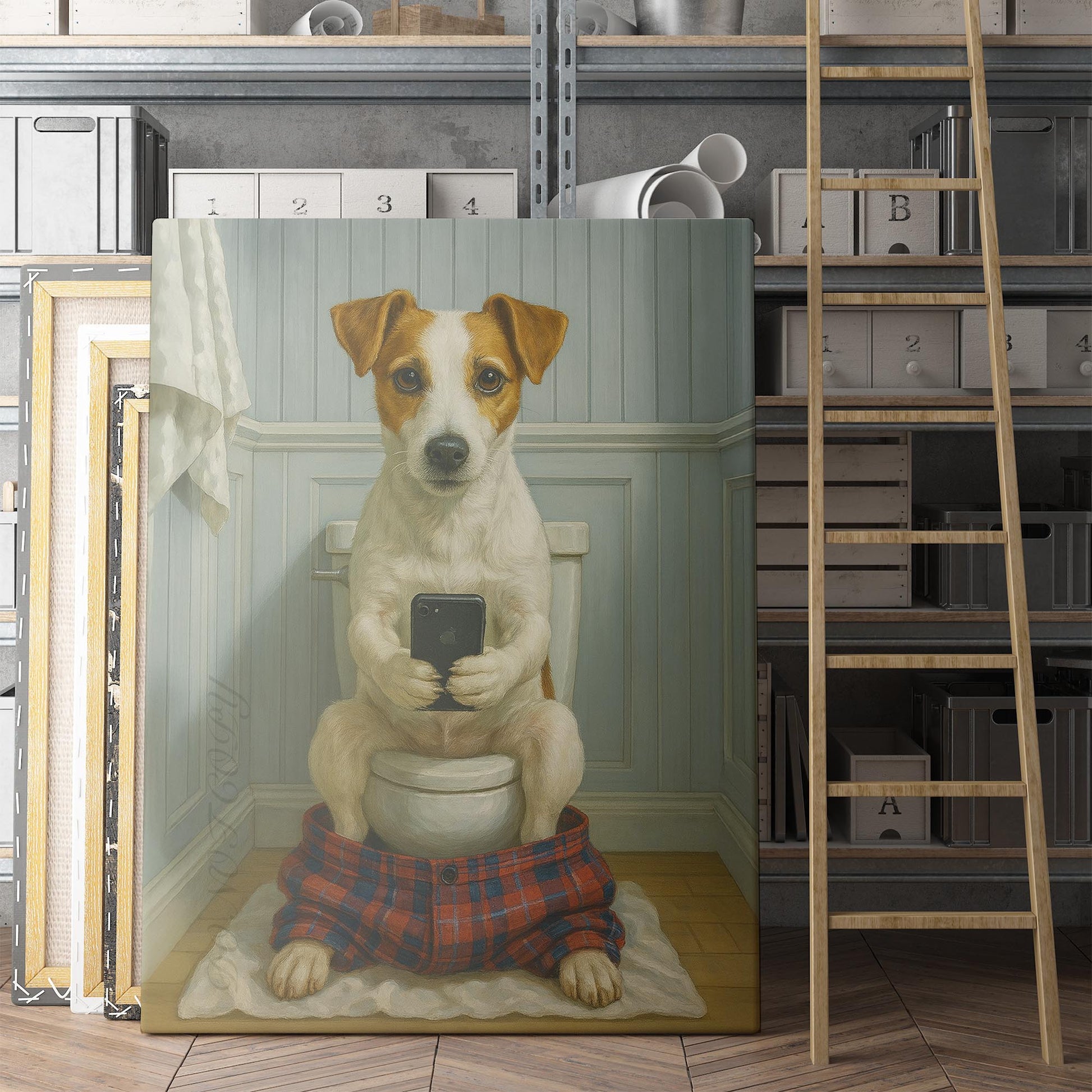 Jack Russell Terrier Dog On The Phone On The Toilet