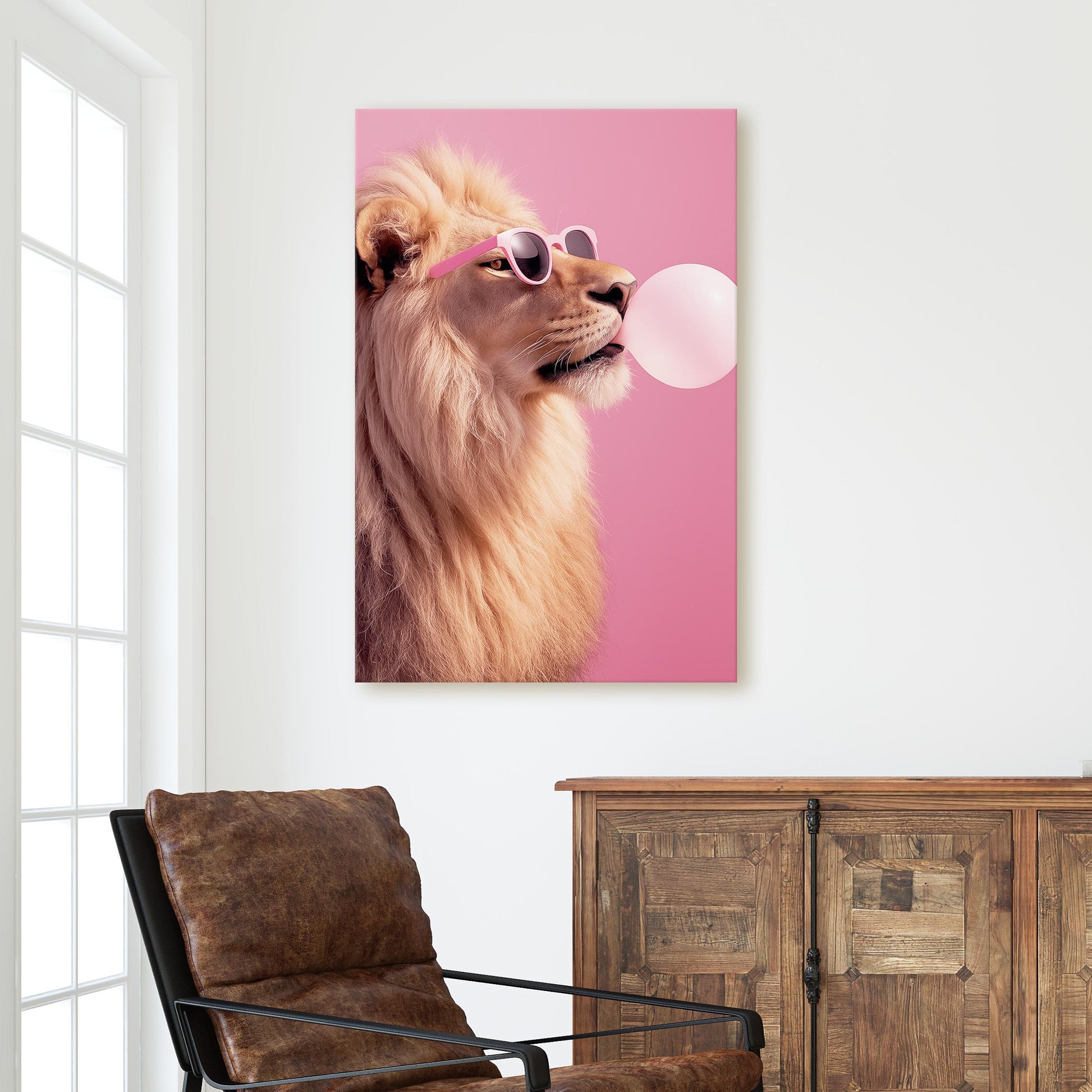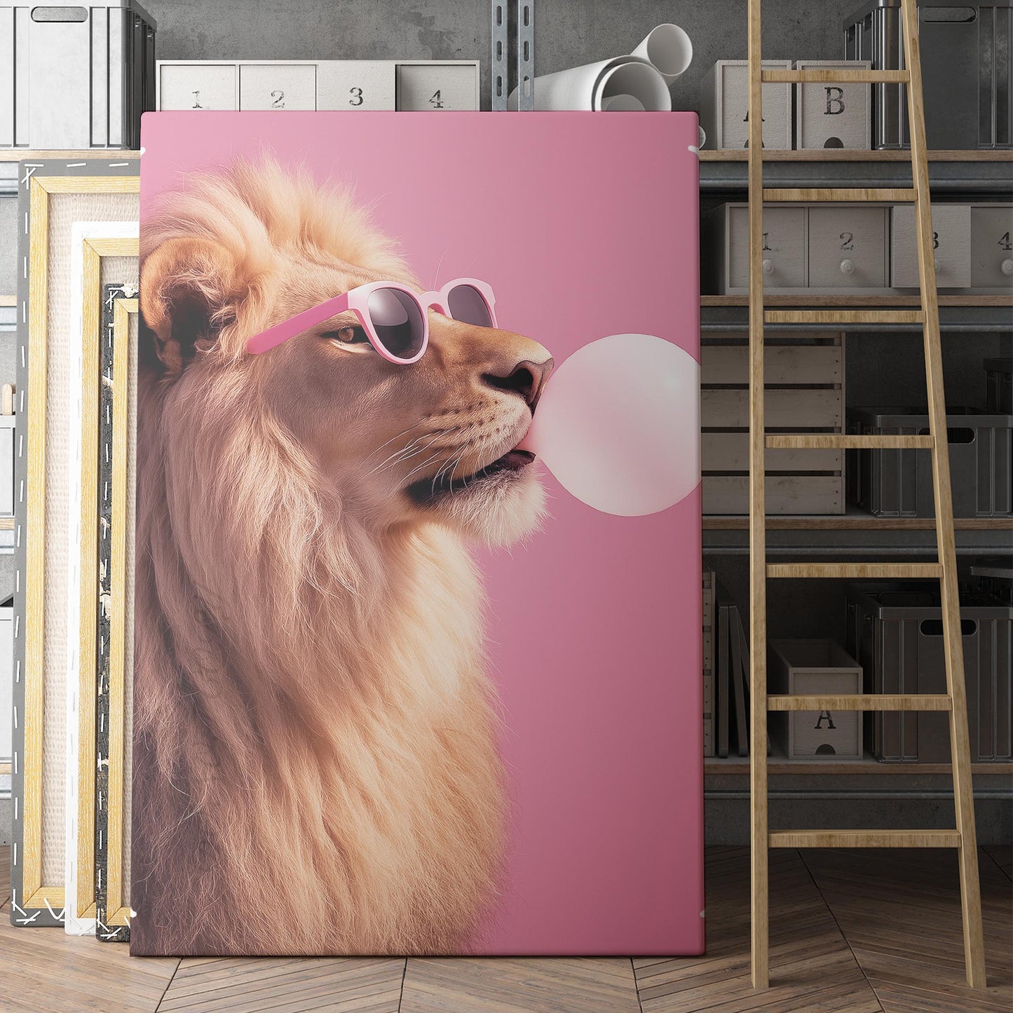 Lion Wearing Sunglasses Blowing Pink Bubble Gum
