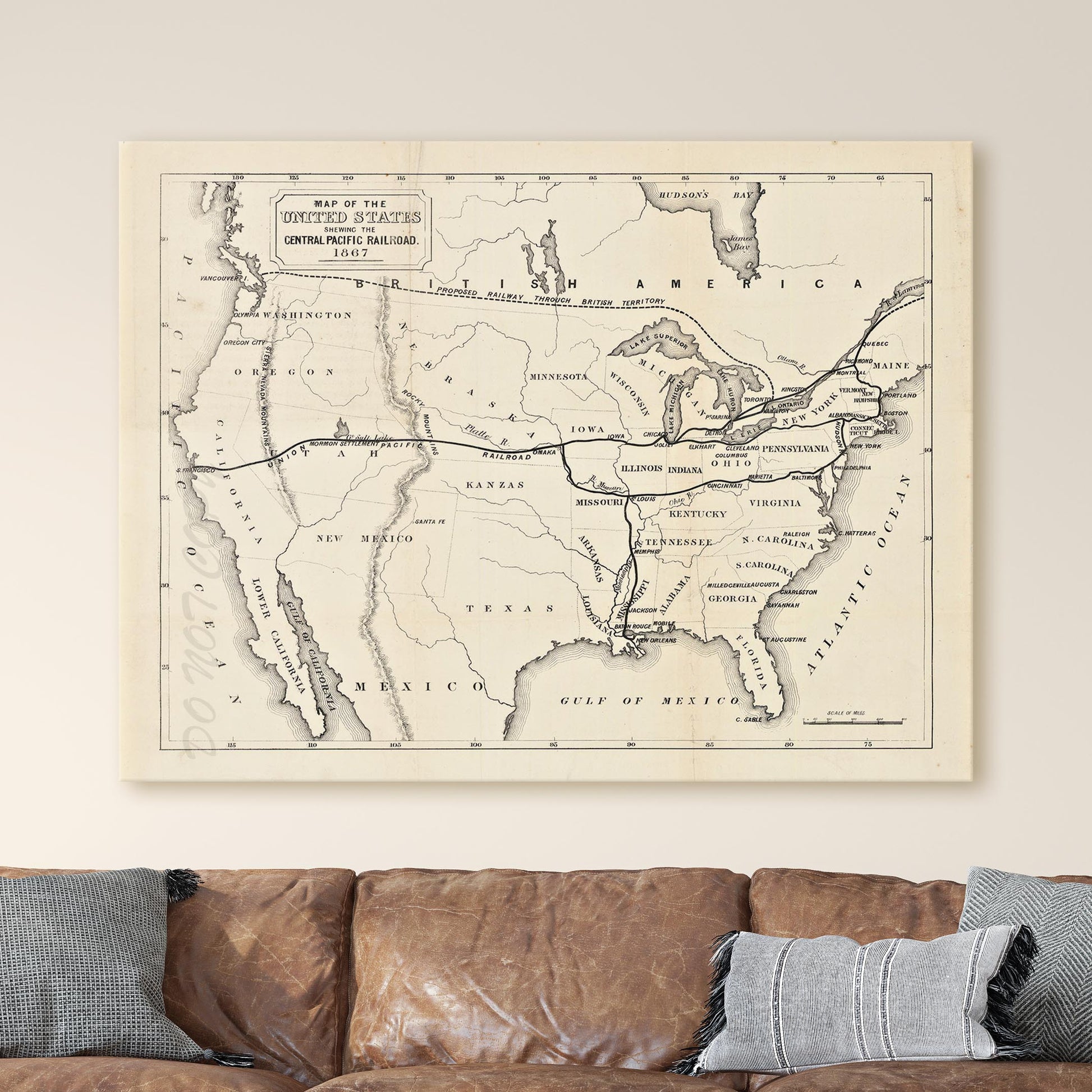 Map of the United States 1867 Central Pacific Railroad