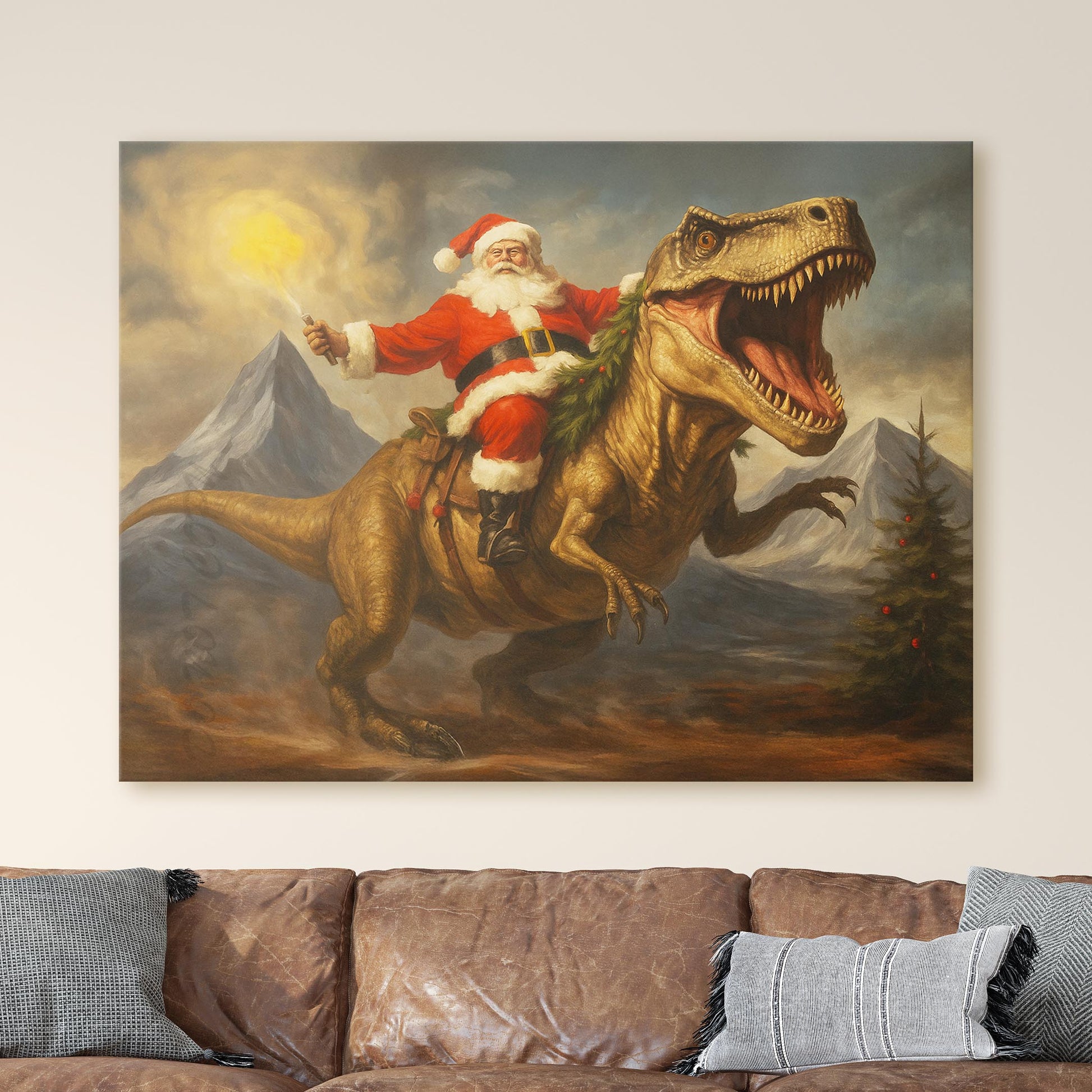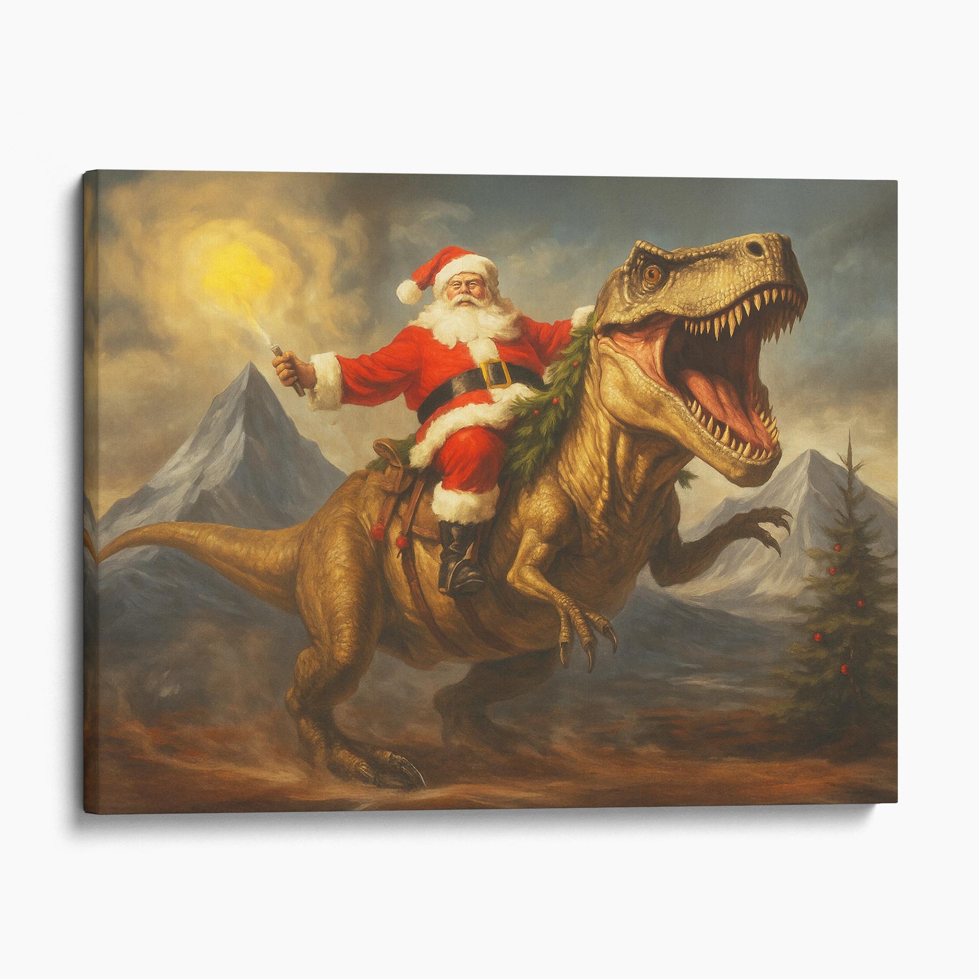 Santa Claus Riding A Dinosaur