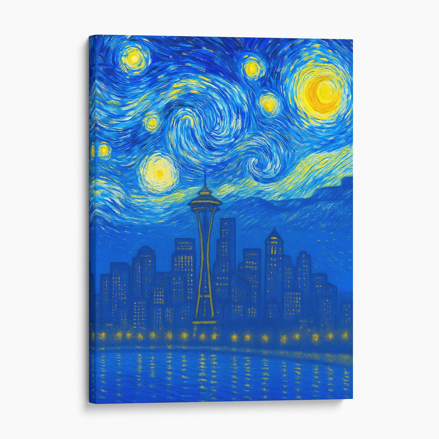 Seattle City Skyline As Van Gogh Starry Night