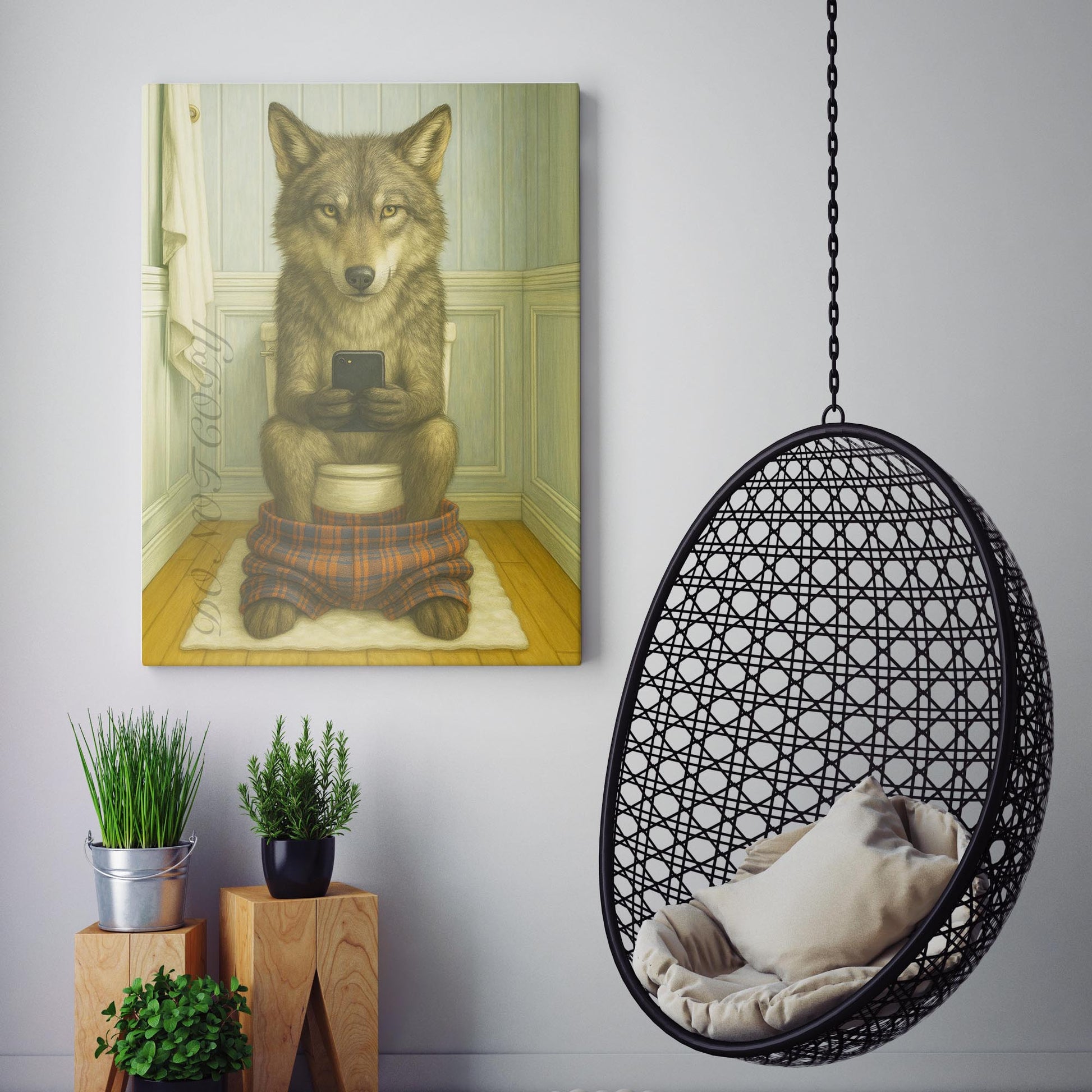 Wolf On The Phone On The Toilet