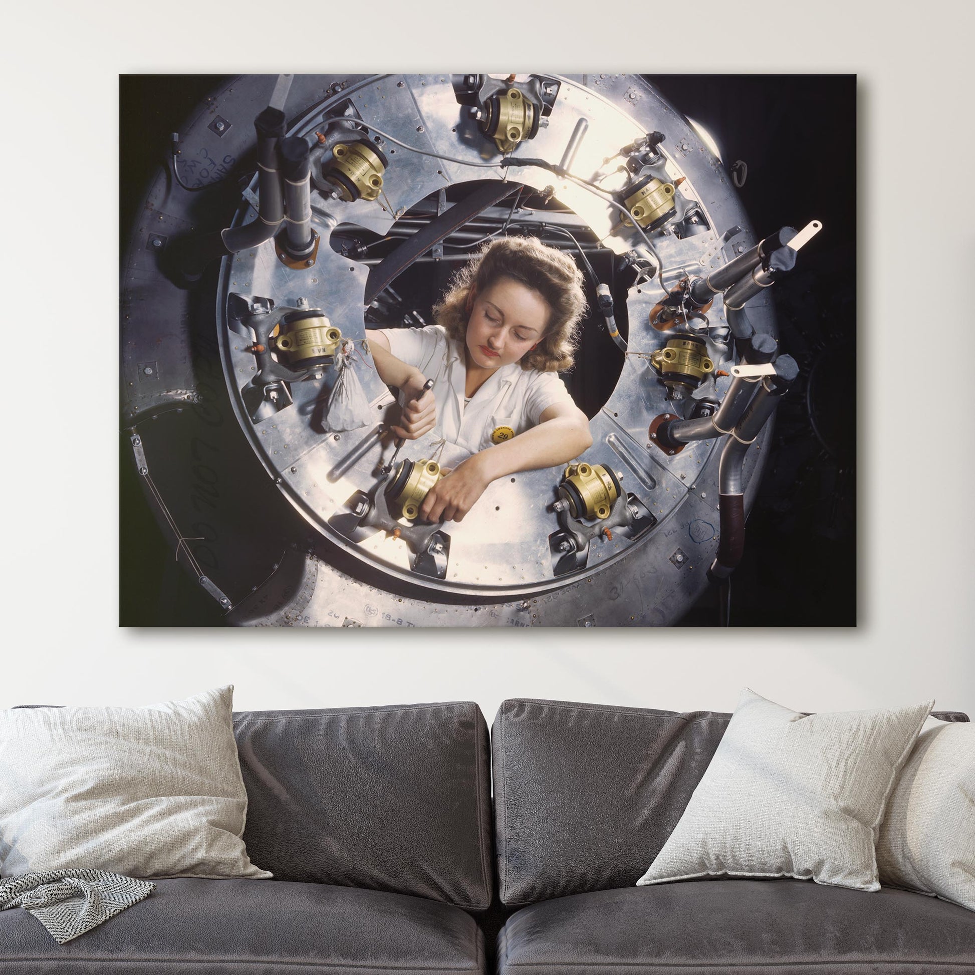 Woman Assembles a B25 Bomber Airplane, World War Two