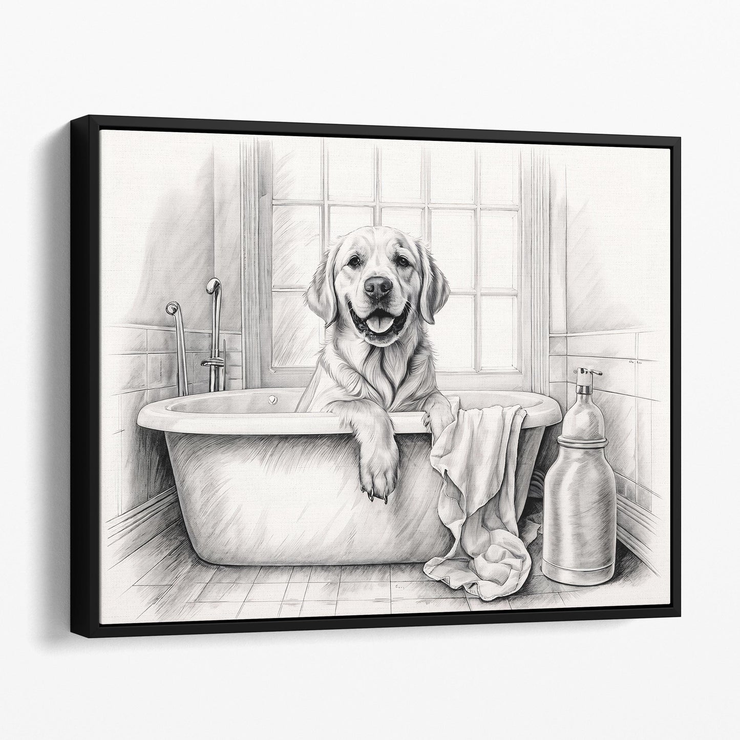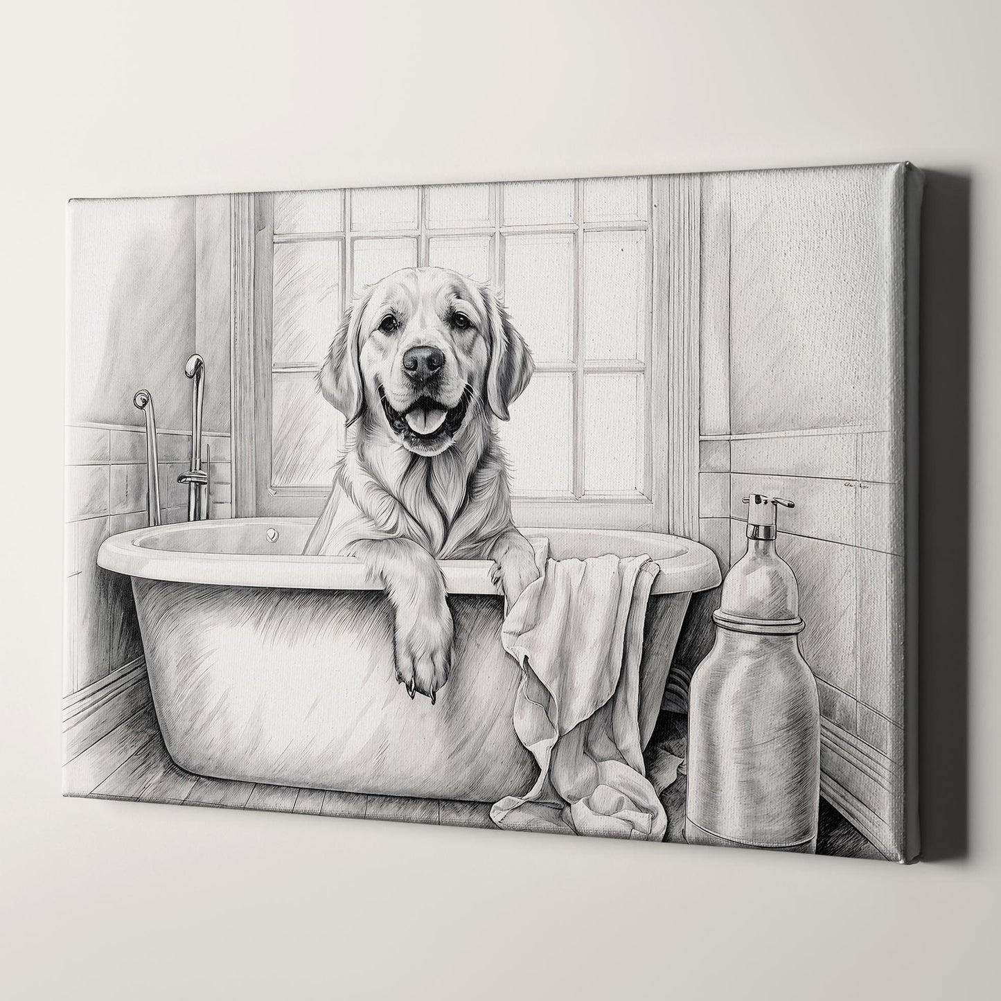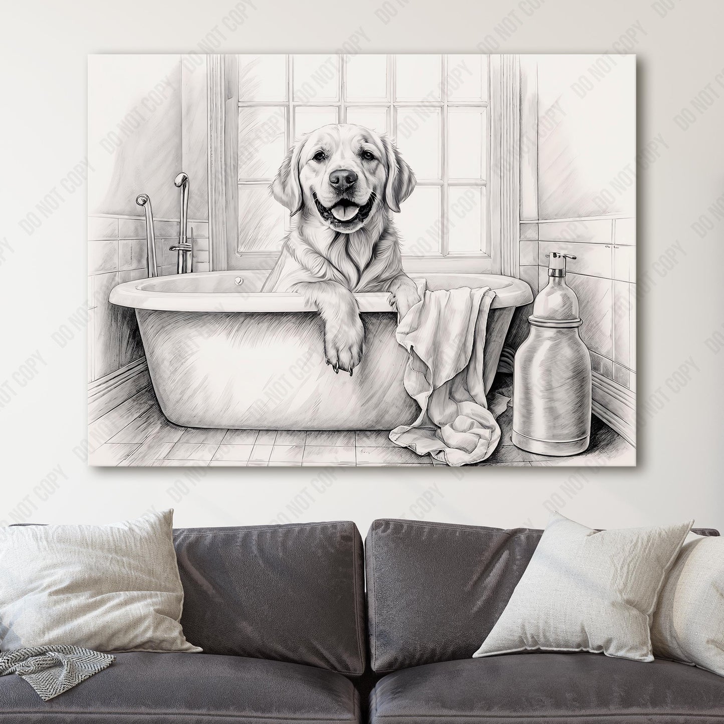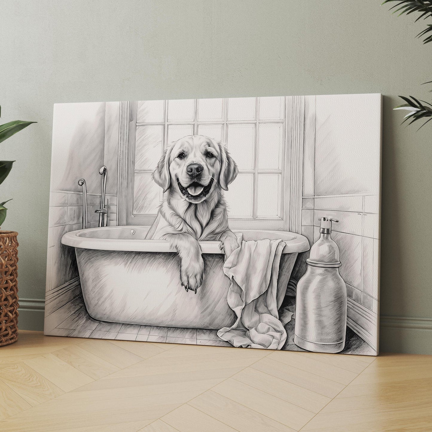 Yellow Labrador Retriever Taking Bath In Bathtub