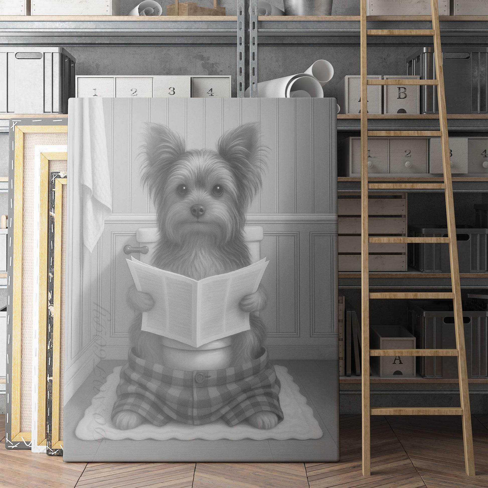 Yorkshire Terrier Dog Reading The Newspaper On The Toilet